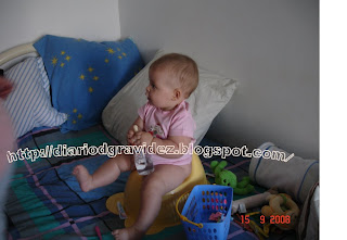E, entretanto, por piada, os meus pais compraram um bacio para a Bé e experimentaram senta-la lá, e numa das vezes ela fez as suas necessidades. Então hoje eu voltei a senta-la lá (também queria ver, pois claro), e não é que ela volta a repetir a gracinha e faz as suas necessidades no bacio!